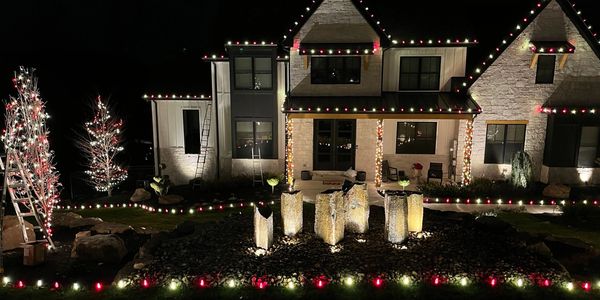 We consult with you to design a custom holiday lighting and decor package for your home. -Roofline - Gutter line - Landscape lighting - Trees & Bushes - Wreaths & Greenery.
